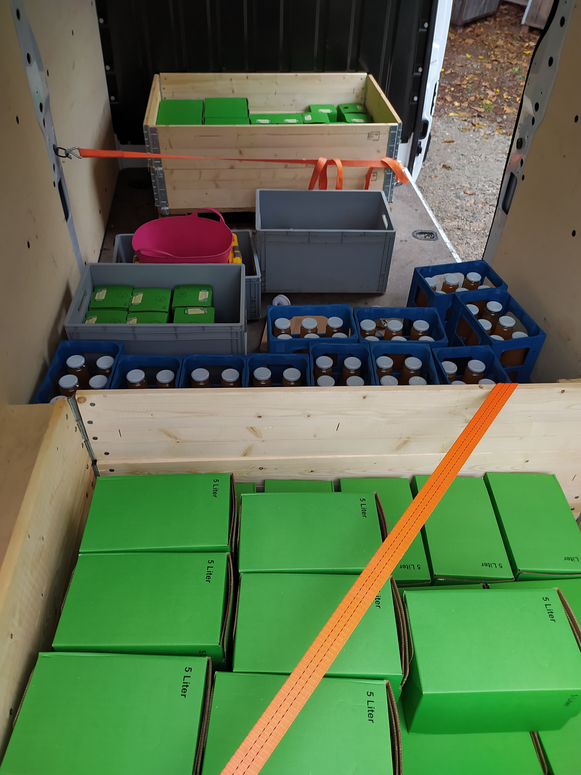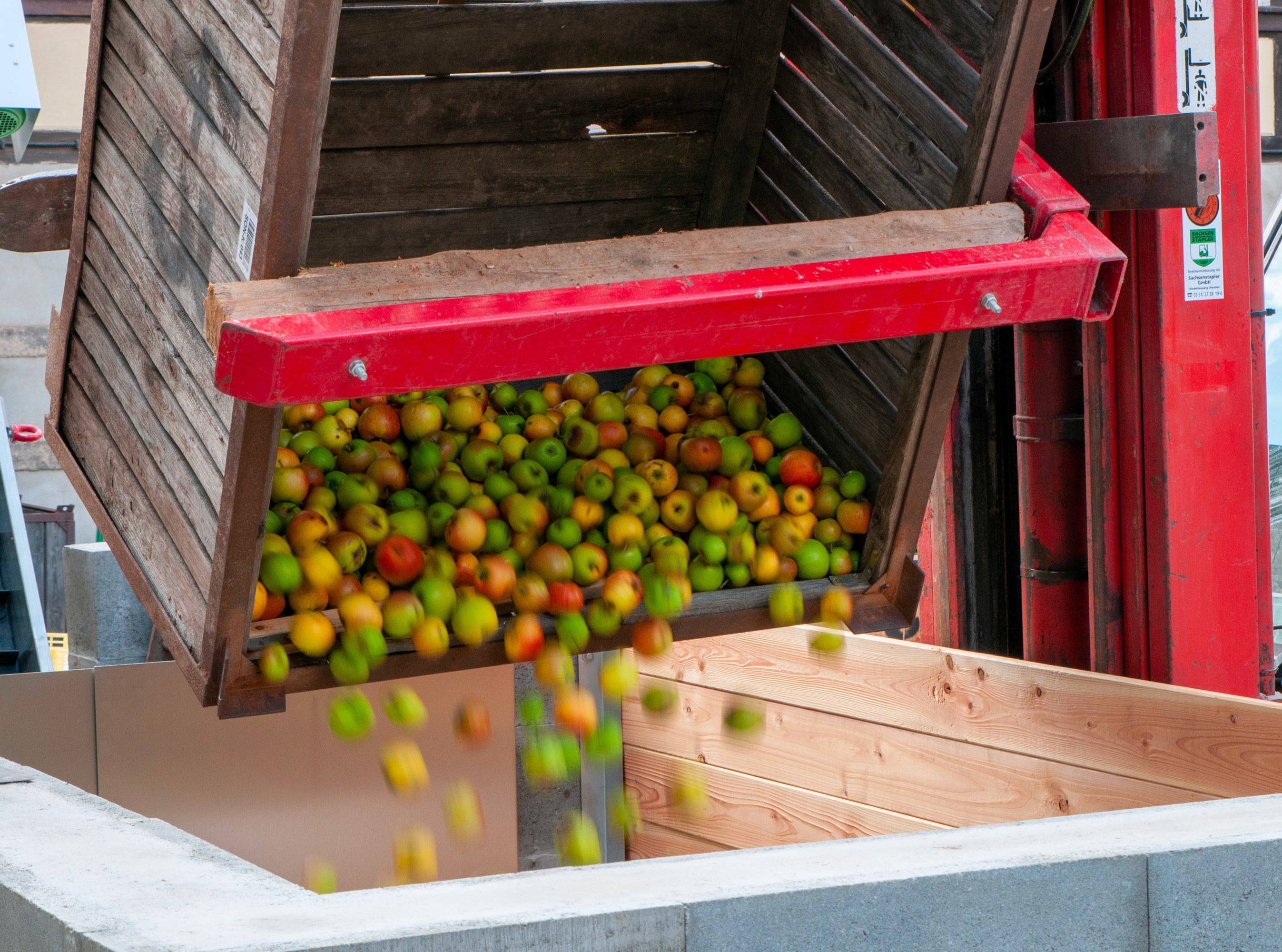Unser Saft wird kurz nach der Ernte der Früchte durch Mahlen und Pressen hergestellt. Damit sich der Saft lange hält wird er anschließend pasteurisiert und in die Bag-in-Box-Verpackungen abgefüllt – oder seit 2019 auch in 1L-Glasflaschen. Da wir viele unterschiedliche Apfelsorten verarbeiten, schmeckt auch der Saft nicht einheitlich.